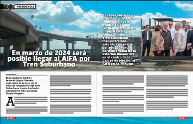 honesto, capaz de salvaguardar la vida, las libertades, la integridad y el patrimonio de las personas. e PRESIDENCIA 08 EN MARZO de 2024 será posible llegar al AIFA por Tren Suburbano. SENADO 10 PRI en el Senado propone regular un eventual gobierno de coalición. CDMX 22 CDMX GARANTIZA a personal de salud mejoras laborales con IMSS-Bienestar. INTERNACIONAL 48 GENERAL RUSO Surovikin es arrestado por su presunta vinculación con el motín del grupo Wagner. SUMARIO 02-07-2023