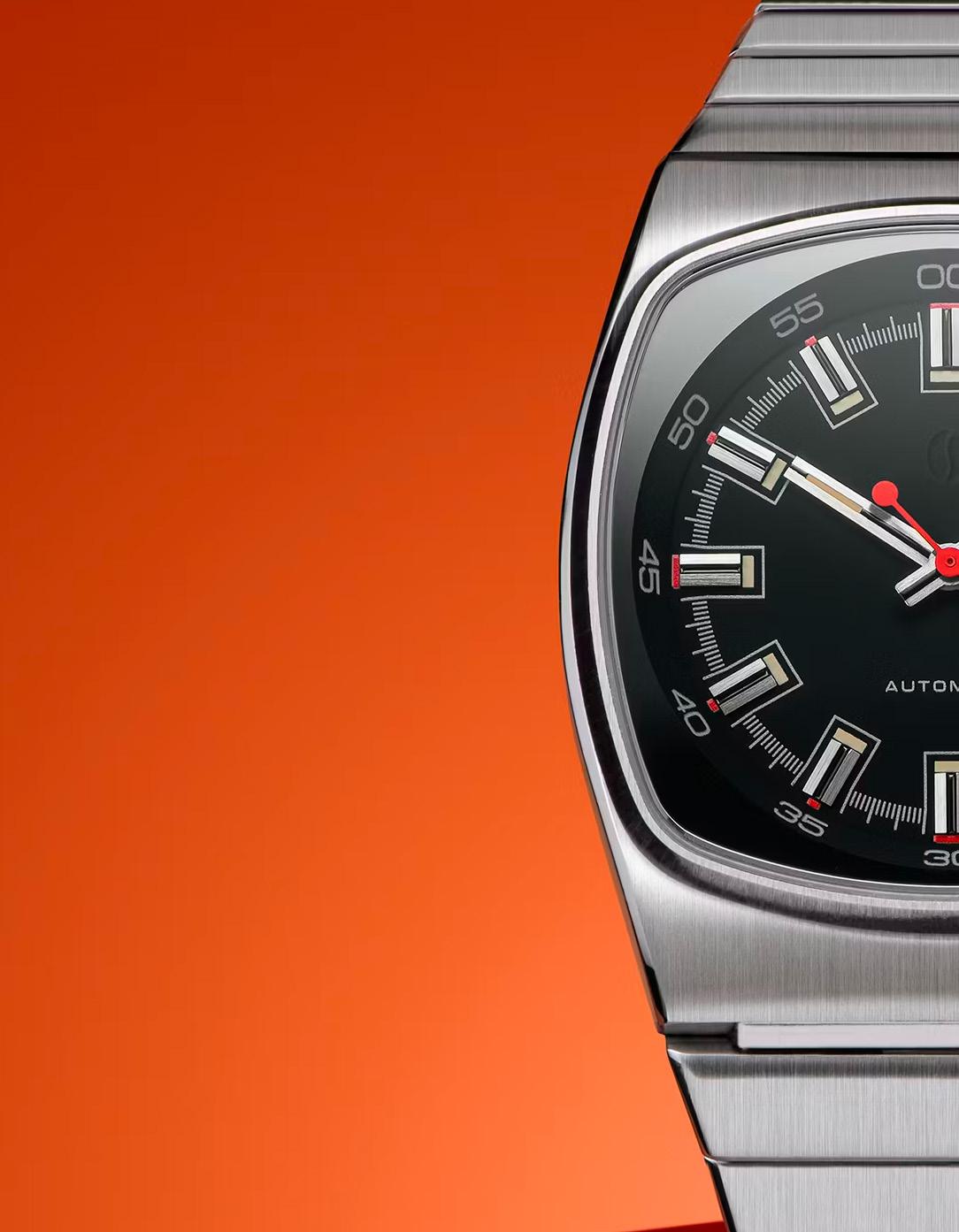 En esta versión, Brew Watches ha decidido prescindir del movimiento mecaquartz y ha optado por el confiable movimiento automático Seiko NH35A. Esto resulta en un reloj de acero inoxidable de solo hora con un diámetro de 36 mm (altura de 41.5 mm) y un grosor de 10.75 mm. El característico logotipo de grano de café de Brew Watches se encuentra aún en la posición de las 12 en punto, y los detalles en color naranja en los índices pulidos del acero combinan a la perfección con la manecilla en forma de paleta de color naranja. Para complementar el conjunto, el reloj cuenta con un agradable lumen de tono crema que realza la apariencia de un reloj de estilo vintage inspirado en los años 70, pero adaptado a un diseño moderno.