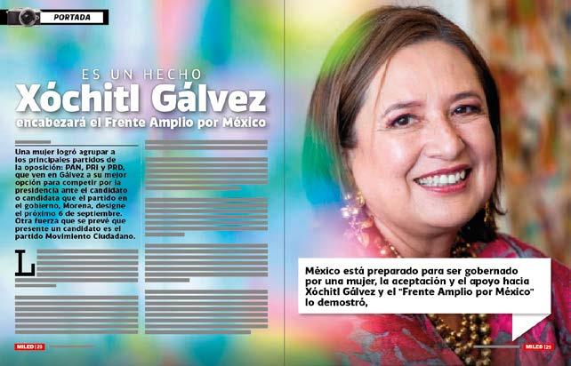 XÓCHITL GÁLVEZ ENCABEZARÁ EL FRENTE AMPLIO POR MÉXICO México está preparado para ser gobernado por una mujer, la aceptación y el apoyo hacia Xóchitl Gálvez y el "Frente Amplio por México" lo demostró. PRESIDENCIA 08