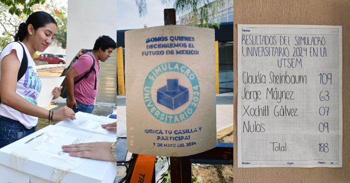 Miles de jóvenes participaron este 7 de mayo en el Simulacro Electoral Universitario 2024 con el objetivo de incentivar la participación de este sector de la población rumbo a las elecciones del 2 de junio catalogadas como las más grandes en la historia moderna del país. Este ejercicio se realiza en aproximadamente 400 planteles universitarios del país, incluso ya comenzaron a circular en redes sociales los resultados de las preferencias para la presidencia de la República.