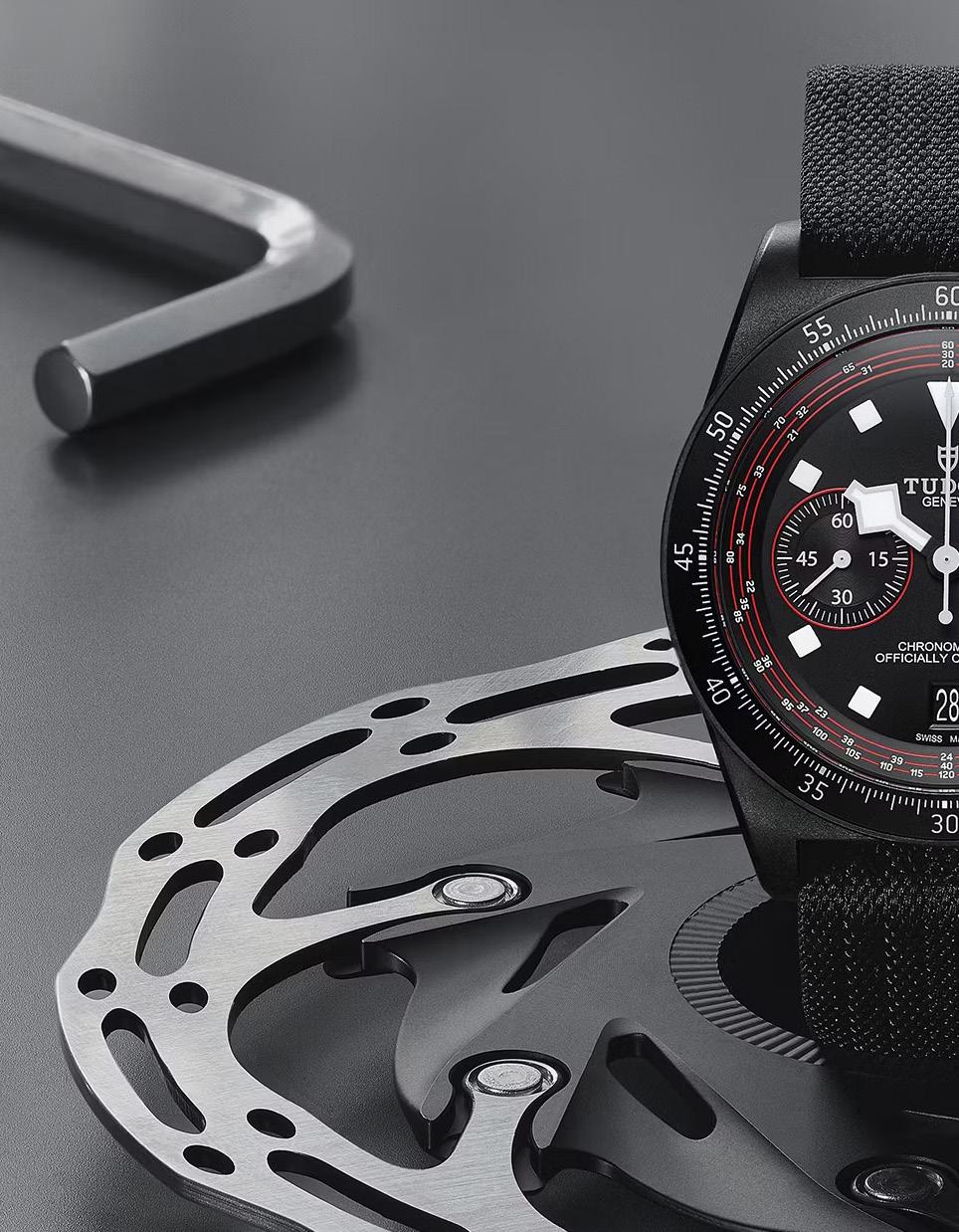 En su núcleo, este nuevo cronógrafo FXD es profundamente similar a la edición Red Bull anterior, con una caja de carbono mate de 43 mm, un movimiento cronógrafo automático y el enfoque atlético común a la línea FXD. La estructura de la caja de barra fija alberga un dial negro con acentos rojos (los colores principales de Tudor y los del equipo Tudor Pro Cycling), y la combinación de colores es adoptada por la correa de tela negra incluida. Lo que es específico de esta evolución inspirada en el ciclismo es el bisel fijo de 60 minutos, una reducción de la resistencia al agua a 100 metros (de 200) y la aplicación del rehaut de una escala taquimétrica específica para ciclismo que está ajustada para las velocidades comunes en el ciclismo, en lugar de aquellas comunes en los autos de carrera. En uso, la escala taquimétrica permite al ciclista calcular su velocidad promedio sobre una distancia determinada.