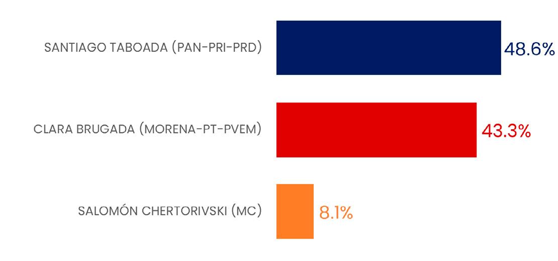 Santiago Taboada 48.6% Clara Brugada 43.3% Salomón Chertorivski 8.1%