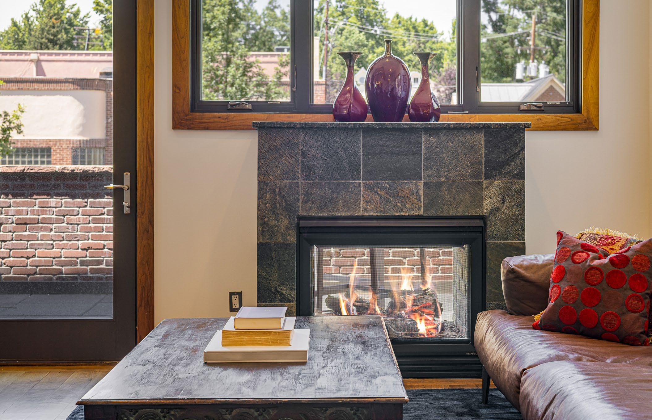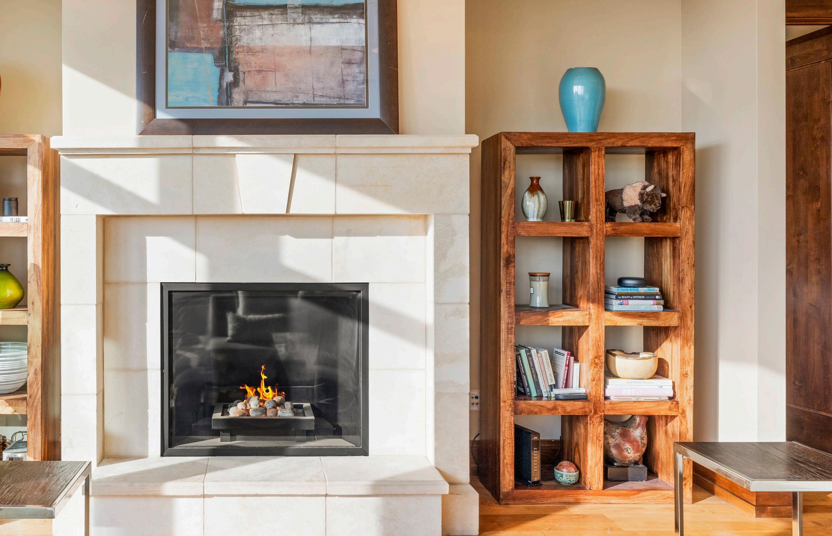 Each tower is anchored by a sculptural, wood-burning fireplace, defining elements that ground the soaring geometry with drama and purpose. Set against the backdrop of the foothills, the home offers remarkable Flatiron views, sitting like a sculpture in the landscape and blending geometry, nature, and light.