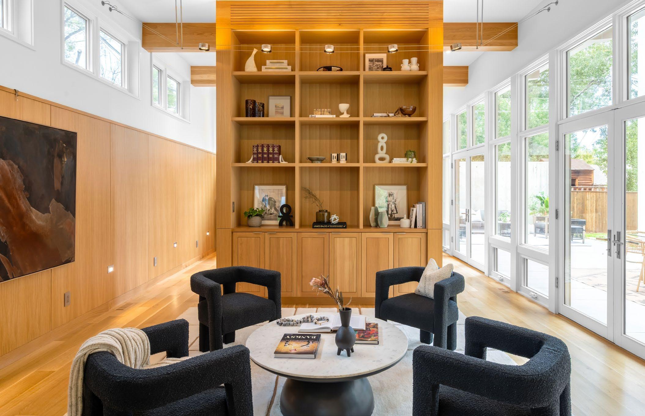 A rare architectural gem in Silver Maple, this newly built residence by Mark Gerwing and Jim Walker of Build ACI blends striking design with state-of-the-art systems. Soaring 14-foot ceilings, custom wood paneling and walls of glass create an open, light-filled floorplan that flows seamlessly with Italian tile and oak floors.