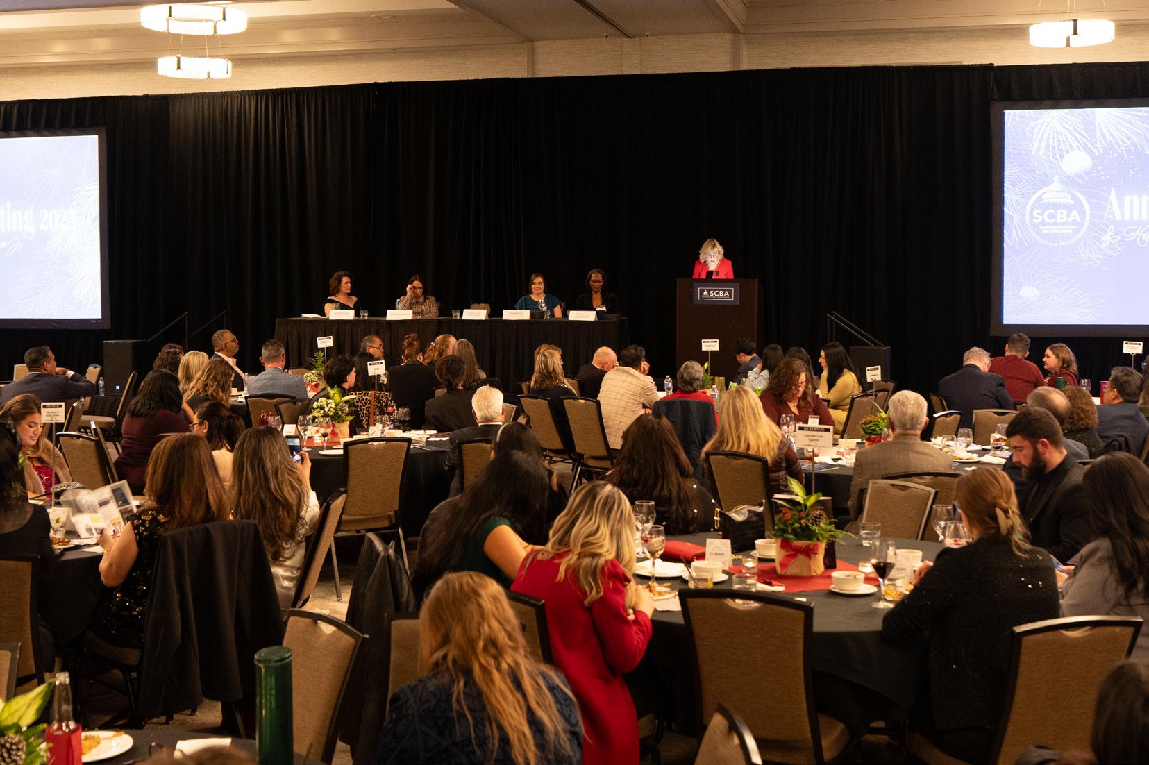 The evening also featured a keynote address by Hon. Consuelo Maria Callahan, who offered thoughtful and inspiring remarks to attendees. Judge Callahan also administered the oath of office to the 2026 SCBA Board, marking a