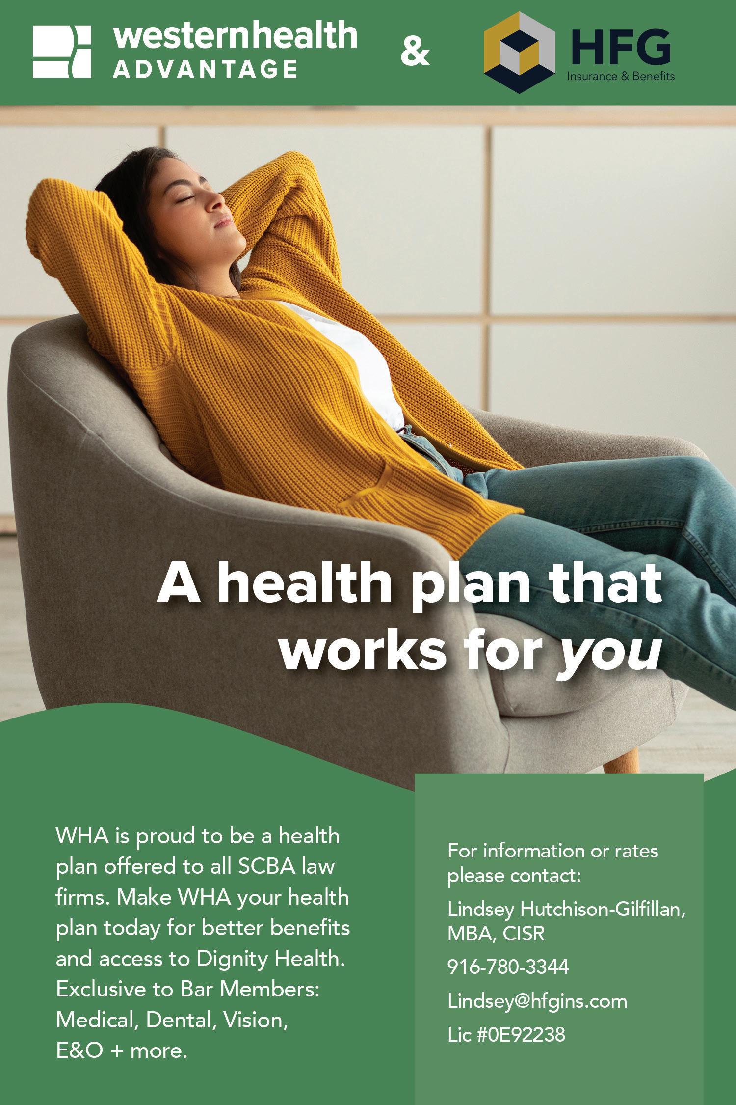 For more information, contact Theresa Lopez at theresa@sacbar. org or to explore benefit options, contact Lindsey HutchisonGilfillan at lindsey@hfgins.com or Jesslyn Sanders at jesslyn@hfgins.com.