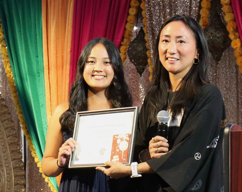 ABAS Board Member Andrea Matsuoka presents a scholarship to McGeorge student Angelica Perez.