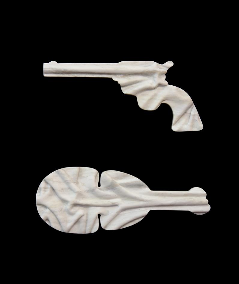 In Pistol and Kotiate, he uses the visual device of softly draped cloth covered objects to build an incisive, multiple narrative about the battles and tribulations of colonial New Zealand.