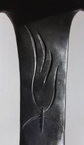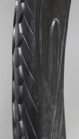 The important Head Shine is in a state of continual transition. Presence and absence are expressed simultaneously and the work viewed in the round reveals itself to be in a continuous state of transition. He presents the dome of the head as a religious container, a shrine, while in the columns body portions suggest far more about what is not there. There are inscribed flowers and flames acting as iconographic vignettes inside the space. These still-life mementoes, morphing forms and the visual tensions between enclosed space and displaced space exist as vivid examples of Stringer’s metaphorical, narrative powers as he builds and delivers an abstracted, mutable sacred space.