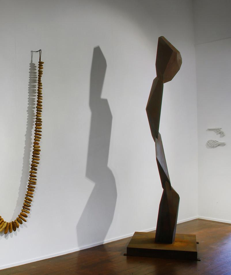 The faceted angles and intersections morph and change with every viewing position. Suggestions and intimations emerge: in the aptly titled Atlas we recognise the emergent presence of the human form. In Eyro Pearce employs the visual contradictions of thick and thin, flat and angled as well as other visual devices which reveal his work to be very confident and extremely nuanced as it alters before our very eyes.