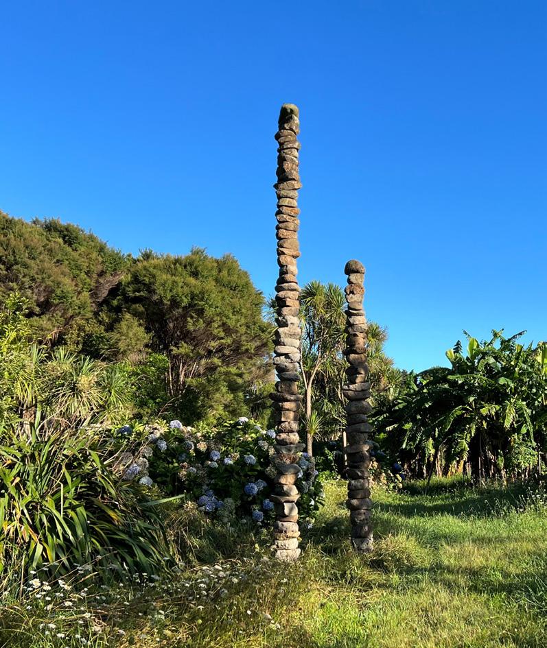 Chris Bailey’s sculptures are physical and symbolic markers of place, identity and history. They describe the artist’s relationship to his whenua and tīpuna. In Te Iti ō Hauraki Bailey depicts the artist’s female ancestor Ruawhea whose ancestral claim to Hauraki allowed the descendants of Marutūāhu to enter the area once she married Tamaterā. The work depicts Ruawhea flanked by her offspring, who feature in the whakapapa of many Hauraki iwi.