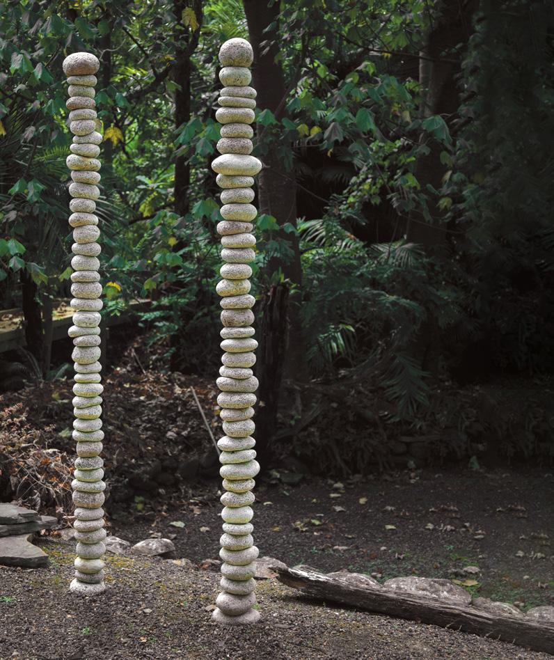 The necklace form in sculptural scale with its subliminal messages of love, spirituality and place, and South Pacific symbolism is now firmly linked to Chris Charteris. In Wasekaseka Charteris builds a broad cultural metaphor: the title explicitly references the Fijian necklace made from split whale teeth and bound with coconut fibre which is worn by chiefs and represents high honour. In this iconic work with the stones of Southland golden quartz stacked like serrated teeth, Charteris celebrates nature’s hand in the materials while celebrating and uniting South Pacific cultures.
