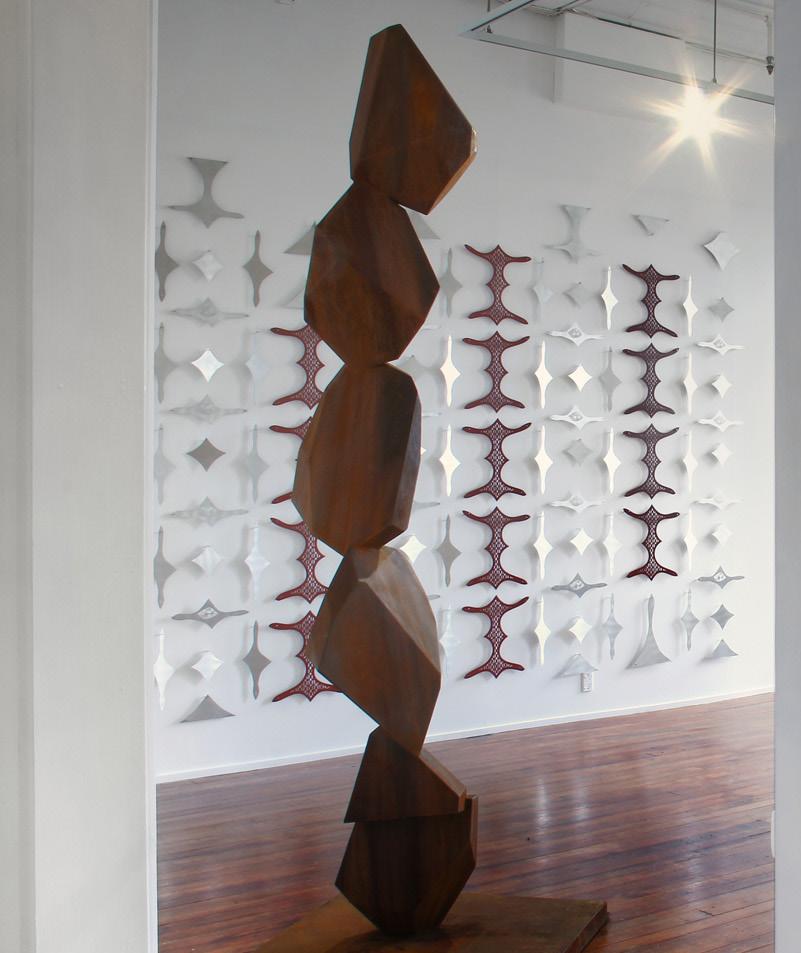 Uniting these fifteen sculptors are numerous dialogues: about identity, location, reverence for the landscape, the numerous man-induced threats facing all of us, the role and reality of history in our emergent values, time-passed time-present timefuture, the role(s) of spirituality in our existence, what is seen and what is not, Pacific navigation, pattern-making, light and darkness, and, of course, the very presence and celebration of the human body itself.
