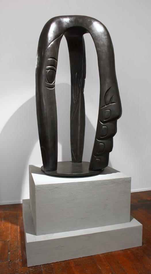 Lyonel Grant acknowledged as a master carver and sculptor has undertaken numerous major marae projects. Our Lady had its genesis back in the 1990’s where a small miscast work kept drawing Lyonel Grant to it, insisting it needed to be scaled up. The result is a reinterpreted figurative work directly informed by the symbolism and traditions of Māori iconography but one taken to a more formal internationalist language where it might be read in a more plural cultural context. Sensual. noticeably fluid and organic, Our Lady traverses time and place while honouring ‘the ihi, wehi and mauri – the power, awe and life force – of customary taonga.’1