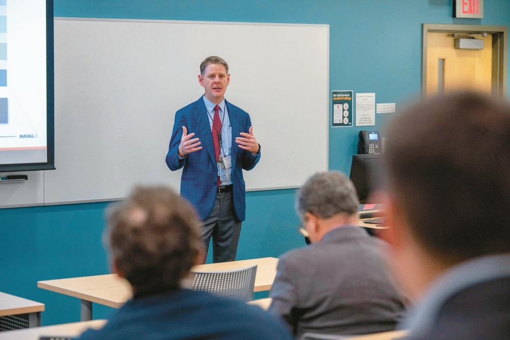The HRBT Expansion Project with a budget exceeding$3.8billion,willexpandthecurrentfourlane capacity to eight lanes, supporting both vehicleandmaritimetrafficduringitsconstruction.The Wardroom began their visit at the HRBT Welcome Center, located at 9401 4th View St., where they weregreetedbytheprojectteam.Thevisitincluded a briefing on the project’s scope, budget, funding, impacts timelines challenges and the specialized machinerydrivingtheinitiative Keyelementsoftheprojectincludeacementplant, “Katherine,”theslurrytreatmentplant,and“Mary,” the tunnel boring machine (TBM), which are integral to its success Mary, a 46-foot-diameter, fully electric, hydraulically propelled machine, is named