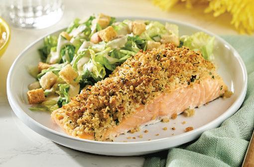 Aspartofthejourney it’simportanttorethinknutrition andyourreciperepertoiretoincludebetter-for-youmeals Forexample youcansatisfyseafoodcravingswhilegetting yourproteinfixwithItalianCrustedSalmonwithCreamy TruffleCaesarSalad.Thisone-pansolutionispairedwith aFreshExpressTwistedCreamyTruffleCaesarChopped Salad Kit, inspired by high-end dining experiences with flavorsthattransportyoutothefinestrestaurantsaround theworld.