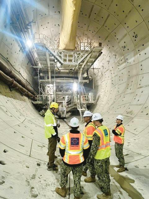 Next, the group toured the North Island project site where they viewed the completed first tunnel andexploredthesecondtunnelunderconstruction. Inside the tunnel, the Wardroom observed Mary in action and engaged with her crew, who provided insights into daily operations and the intricacies of