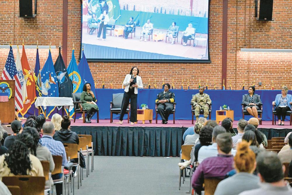The panelists included several local community leaders a member of the Virginia National Guard and two Aviation leaders They were: Danielle Bowers, owner of the Lifestyle Realty Group, LLC, a veteran-, female-, and minority-owned realty team based in Petersburg, Virginia; the Honorable Sheriff Vanessa Crawford of Petersburg; Army Chief Warrant Officer 5 D’JuanaGoodwin,VirginiaNationalGuard’s G-1personnelchief;GowriMandgi division chief, Procurement Programs at DLA Aviation; and Martha Tuck director ProcurementProcessSupportatDLAAviation.The U.S.ArmyWomen’sMuseumalsoprovideda displayexhibitfeaturingwomeninservice