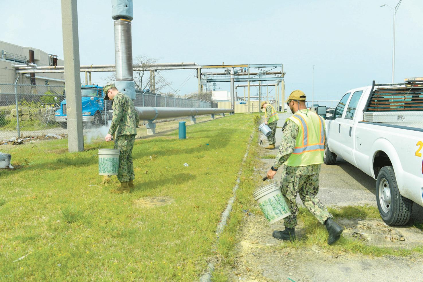 BaseTicketandTowing.Everyoneofthese divisions provides a specific service to the installationthroughtheiruniquesetofprojectsandtasks “Each person here has their designated job,whichtheycompletetotheirfullestability,” said Aviation Ordnancemen 2nd Class LouisBosch,theGroundsDivisionassistant leadingpettyofficer. TheGroundsDivision’smeticulousefforts contribute to maintaining a tidy and organized environment, enhancing the overall appearance of the base and promoting a sense of pride among those who live and workonbase Thedivisiondoesthisbydiligently cleaning up litter and other large debris scattered around the base and near the waterfront They also trim brushes and otherovergrownplants.