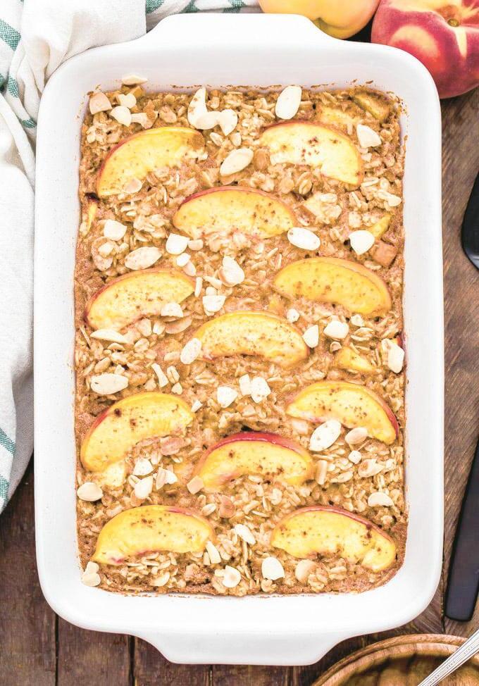 Cinnamon Peach Almond Baked Oatmeal