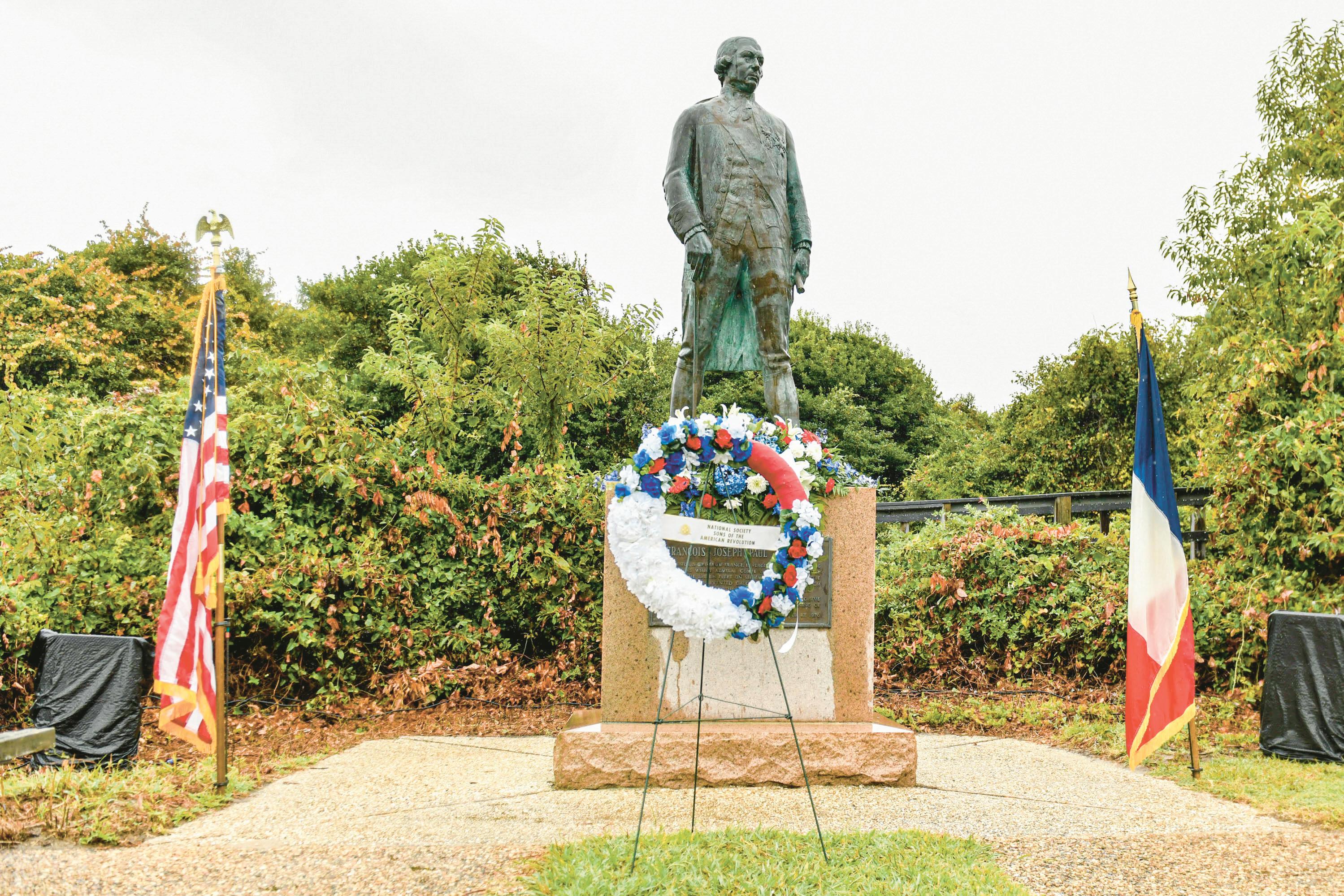 On October 17, 1976, the French governmenterectedabronzestatueofdeGrasseat the First Landing Cross memorial on Fort StoryasagifttotheUnitedStates Thisyear’s memorialceremonywasheldinfrontofthe statue