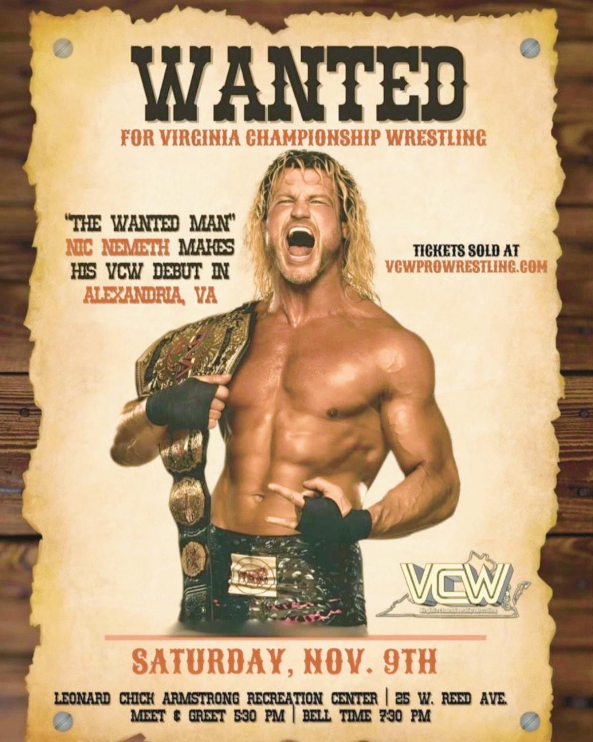 VirginiaChampionshipWrestling(VCW) willmaketheirreturntoAlexandriaandthe Leonard “Chick” Armstrong Recreation Center on November 9th, featuring the debutofformerWorldWrestlingEntertainment(WWE)superstar“TheWantedMan” Nic Nemeth. The wrestler formerly known as Dolph Ziggler was highly successful in WWE, winning the World Heavyweight Championship twice, the Intercontinental Championship six times, and recording four Tag Team Championship reigns He currentlycompetesinindependentcompaniesandTotalNonstopAction(TNA)where he reigns as the TNA World Heavyweight Champion. His scheduled VCW match againstRexLawlesswillmarkhisfirstindependentwrestlingmatchinVirginiaandwill alsogivefanstheopportunityforameetand greet.