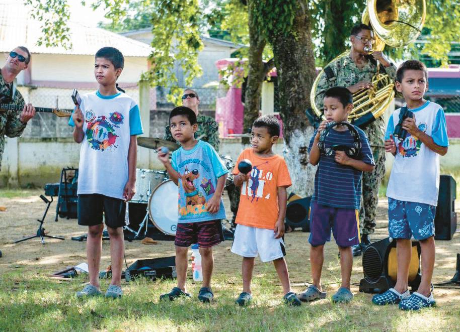 the med site.(U.S.NAVYPHOTOBYMASS COMMUNICATIONSPECIALISTSEAMANDEVENFERNANDEZ) ABOVE: Mass Communication Specialist 1st Class DonWhite,from Norfolk,Virginia,attached to the hospital ship USNS Comfort (T-AH 20),shows a child from the orphanage Hugarde Niños San Ramon theviewthrough a camera in Puerto Cortes,Honduras.(U.S.NAVYPHOTOBY MASSCOMMUNICATIONSPECIALIST3RDCLASSSOPHIASIMONS) RIGHT:ASailorattached to hospital ship USNS Comfort (T-AH 20) plays soccerwith a child from the Hagarde Niños San Ramon orphanage.(U.S.NAVYPHOTOBYMASSCOMMUNICATION SPECIALIST2NDCLASSETHANJ.SOTO) BELOW: Children from the orphanage Hugarde Niños San Ramon assist the U.S.Fleet Forces Band during a performance forthe orphanage and Sailors attached to the hospital ship USNS Comfort (T-AH 20) in Puerto Cortes,Honduras.(U.S.NAVYPHOTOBYMASSCOMMUNICATION SPECIALIST3RDCLASSSOPHIASIMONS) www flagshipnews.com | The Flagship | Section 1 | Thursday, November 10 2022 5