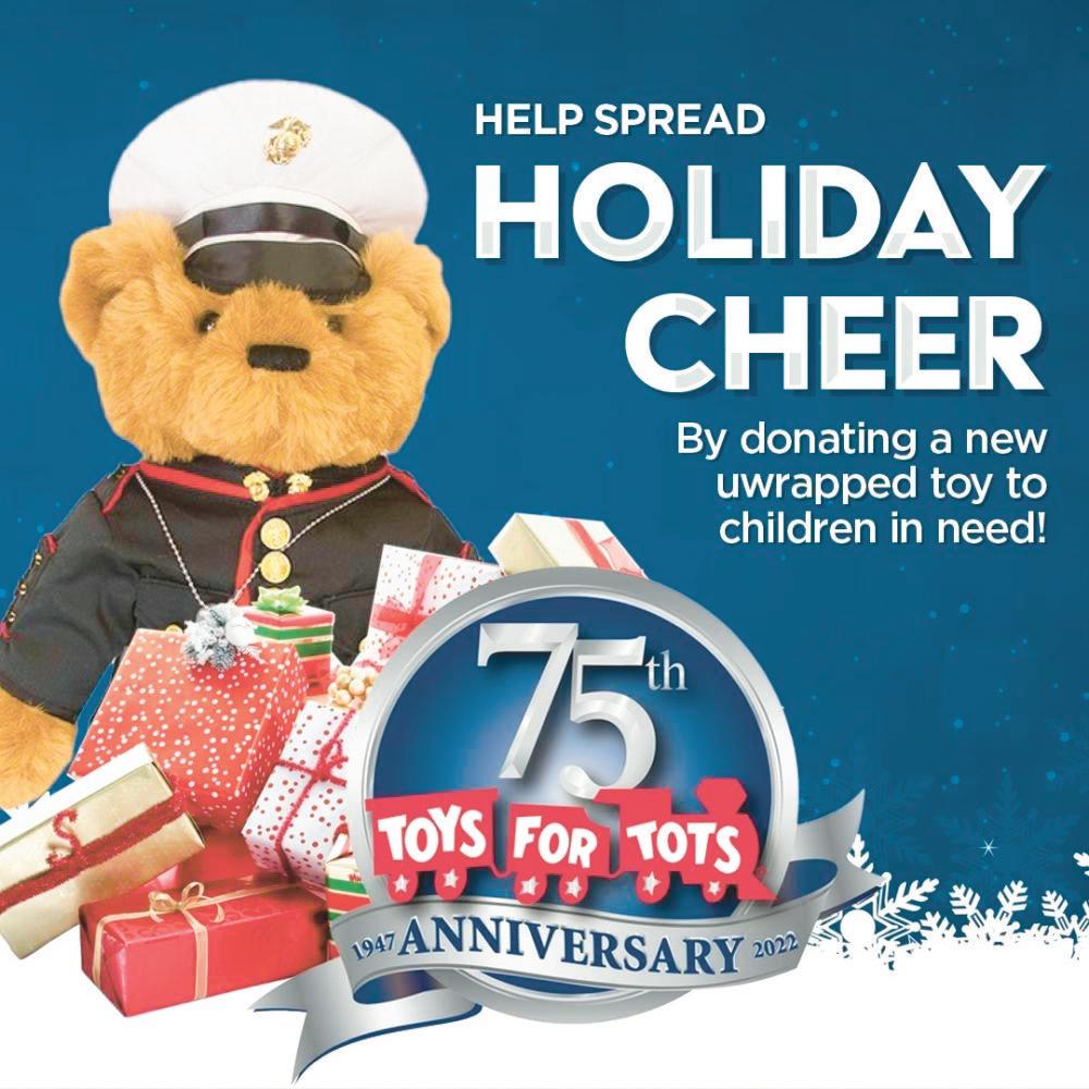 “Thisisthe75thyeartheU.S.Marine Corps Reserves have been collecting through its Toys for Tots Program,” said Bill Marx, Marketing Promotion Coordinator for the Navy Exchange Service Command “We are excited to once again welcome the Toys for Tots donation boxes to our NEX locations thisholidayseason.Thedatesforwhen the donation boxes will be in the stores willvarybyNEXlocation,socustomers shouldcontacttheirlocalstoreformore information.”