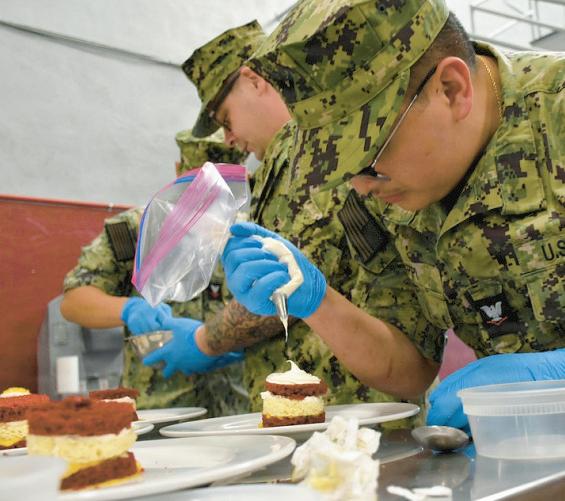 For Culinary Specialist 1st Class R’rianna Davis, a first-time team member who took home a bronze medal in the Pastry Chef of theYearcategory,thehighlightoftheexperience was the two months of training leadingtotheevent. She also had advice for any culinary specialiststhinkingabouttryingoutfornext year’steam.