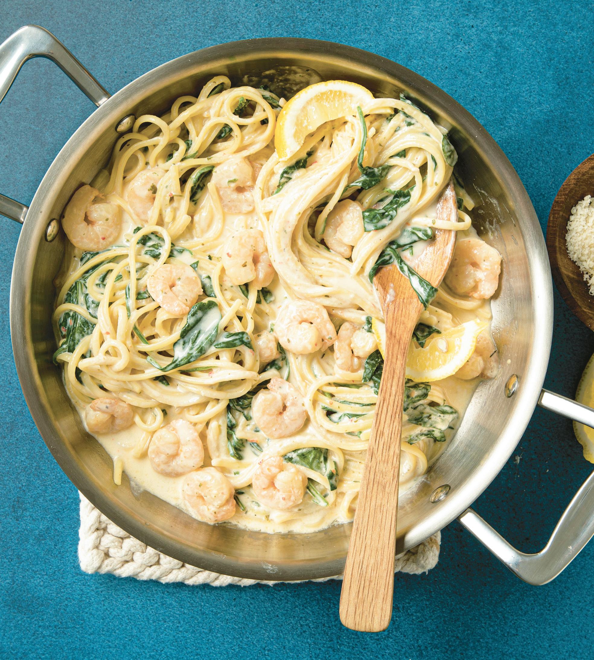 If preparing seafood feels intimidating, try starting with dishes that are easy, familiar and approachable. Forexample One-PotCreamyShrimpScampifeatures a velvety sauce, earthy spinach and buttery, delicious shrimp arecognizableandapproachablerecipethat canbeagatewaytodiscovery