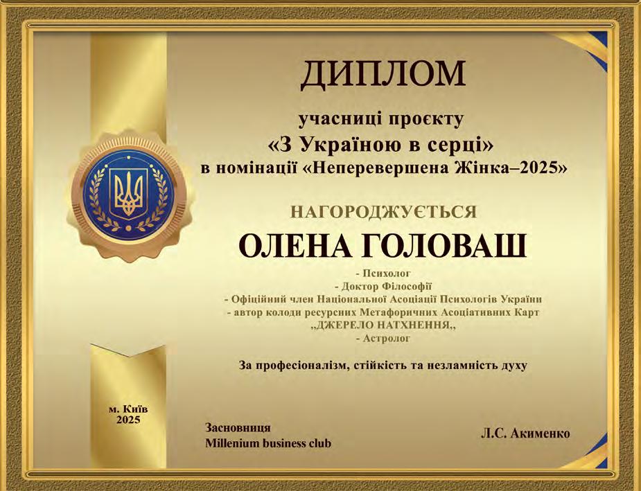 нерка особистісного розвитку. Переможниця обласного конкурсу «Психолог року2018». Засновниця студії психологіч-