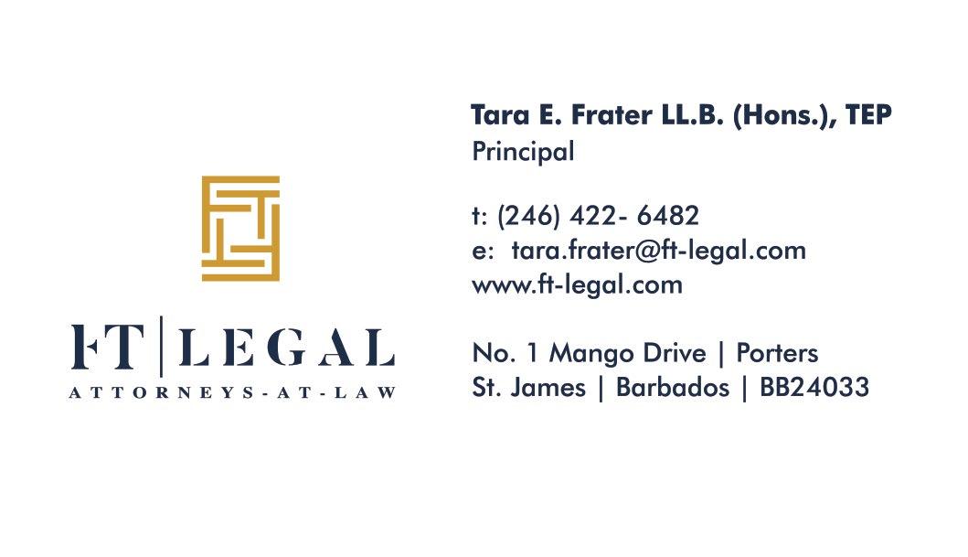Tara E. Frater LL.B. (Hons), TEP No. 1 Mango Drive, Porters, St. James, Barbados, BB24033