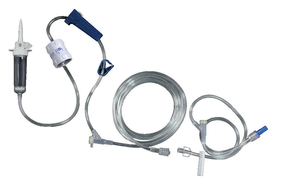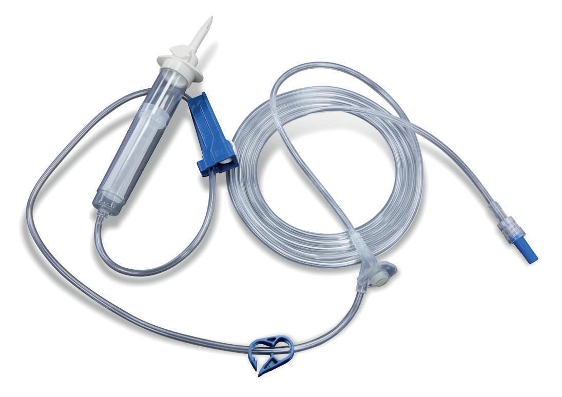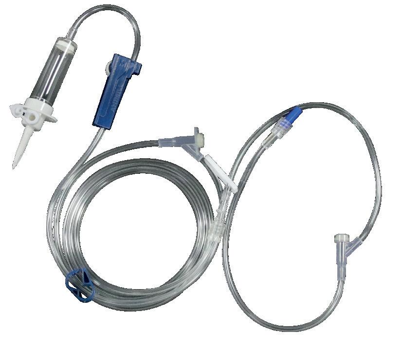 Anti-kink® IV administration set with 15 Micron Particle Filter within the drip chamber. This helps to prevent foreign bodies or crystallized fluids from passing into the fluid line.