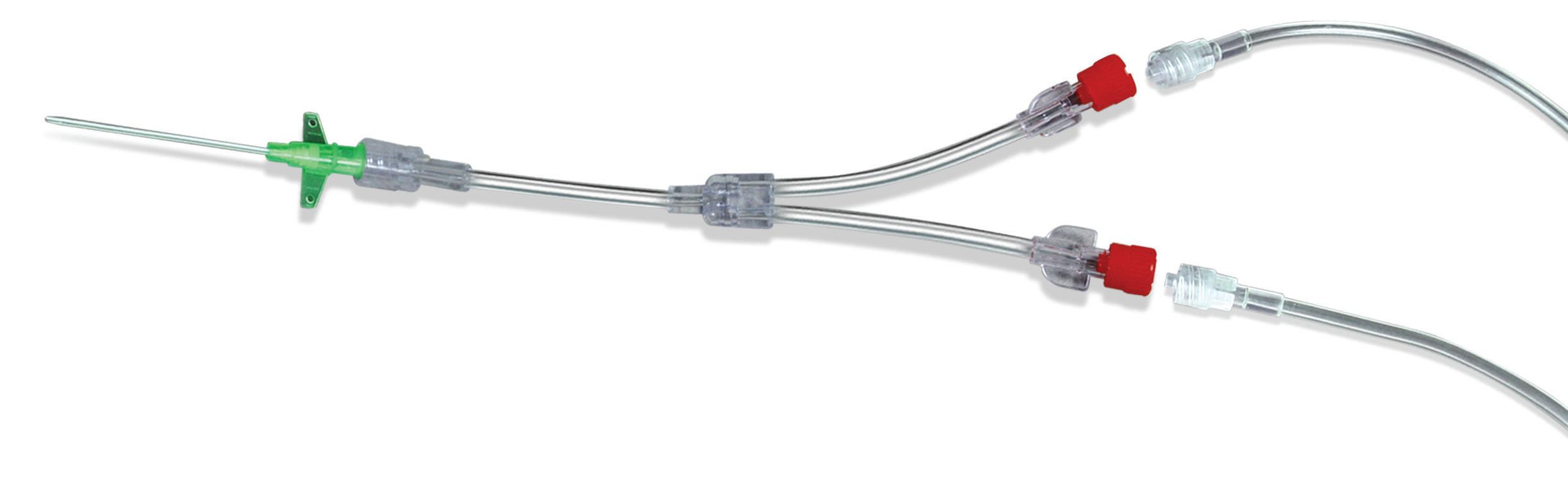 • Winged grip luer push/lock fit connectors on two branches at the proximal end.