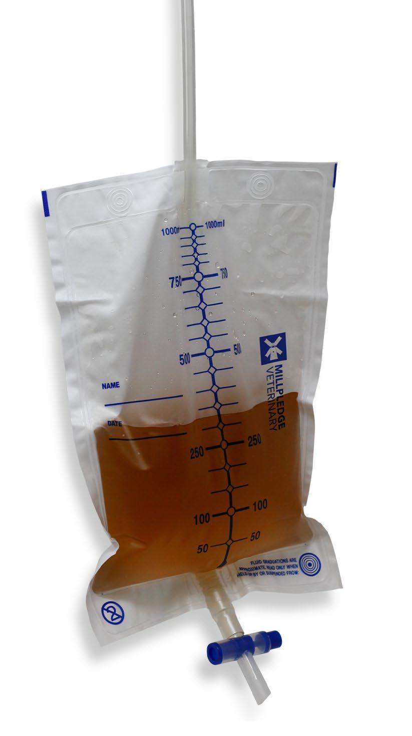 • 1 litre bag comes with all connections to foley, dog and cat catheters – Everything you need! No need for a ‘Little Herbert’.