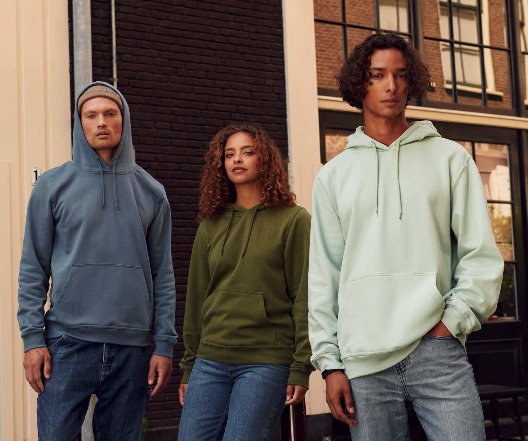 Pehmeä stabilisoitu kangas, joten hupparia voidaan pestä paljon ilman että se nyppyyntyy. Materiaali: 80% puuvilla, 20% kierrätetty polyesteri. Paino: 260 g/m2
