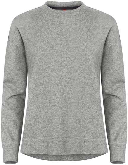 Rento naisten collegepaita puuvillan ja kierrätetyn polyes-terin sekoituksesta. French Terry neulosta. Hieman pudotetut olkapäät ja halkiot sivusaumoissa. Joustava resori niskassa, helmassa ja hihansuissa. Kontrastivärinen niskanauha ja helposti irrotettava niskalappu, joka voidaan tarvittaessa vaihtaa. Pehmeä stabilisoitu kangas, joten paitaa voidaan pestä paljon ilman että se nyppyyntyy. Materiaali: 80% puuvilla, 20% kierrätetty polyesteri. Paino: 280 g/m2
