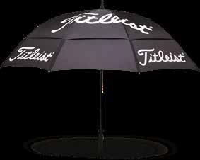 Uusi Titleist Tour Double Canopy Umbrella suojaa sekä sateelta että auringolta ja tarjoaa täydellisen suojan golfkentällä silloin, kun sitä tarvitset. Sateenvarjo on vahvistettu lisäämään vakautta, laatua ja kestävyyttä. Uusi pehmeä kahva Titleist-logolla luo tour-henkisen ilmeen. Halkaisija 173 cm.