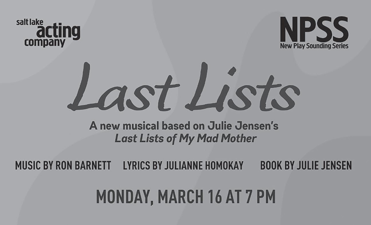 Itis a joy to welcome you and to take a moment to celebrate Elaine Jarvik, a local writer and playwright whose voice has helped shape the artistic life of Salt Lake Acting Company.