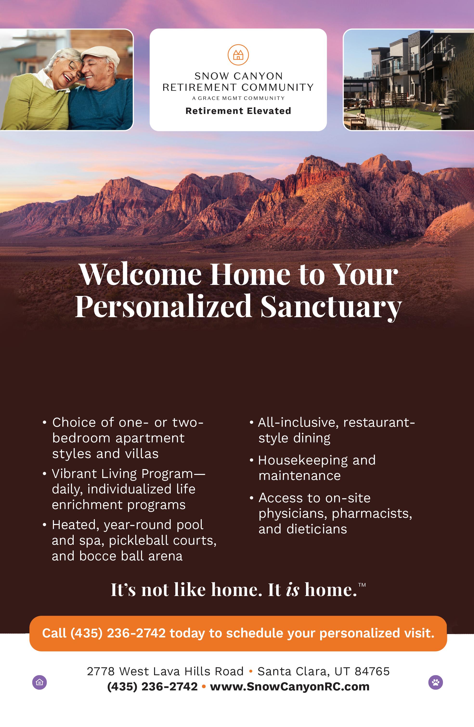 Elevate your lifestyle at Snow Canyon Retirement Community, where Southern Utah’s beautiful red rock landscape meets the epitome of luxury senior living in a place that’s not just like home—it is home.