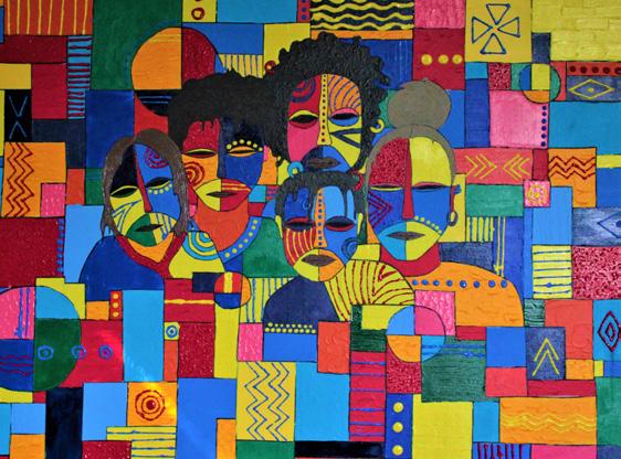 Below-left: Chloe’s investigation has been on the topic of Image, Identity and Culture, with her final acrylic on canvas reflecting colour themes and family life in her home country of Eswatini.
