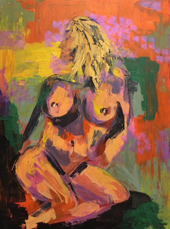 Left: Marina’s project has been a study of the female form, with her final piece presented as acrylic on canvas.