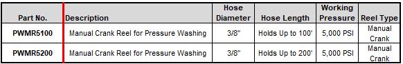 • Acommodates 3/8" diameter pressure washer hose in either 100 or 200-feet lengths