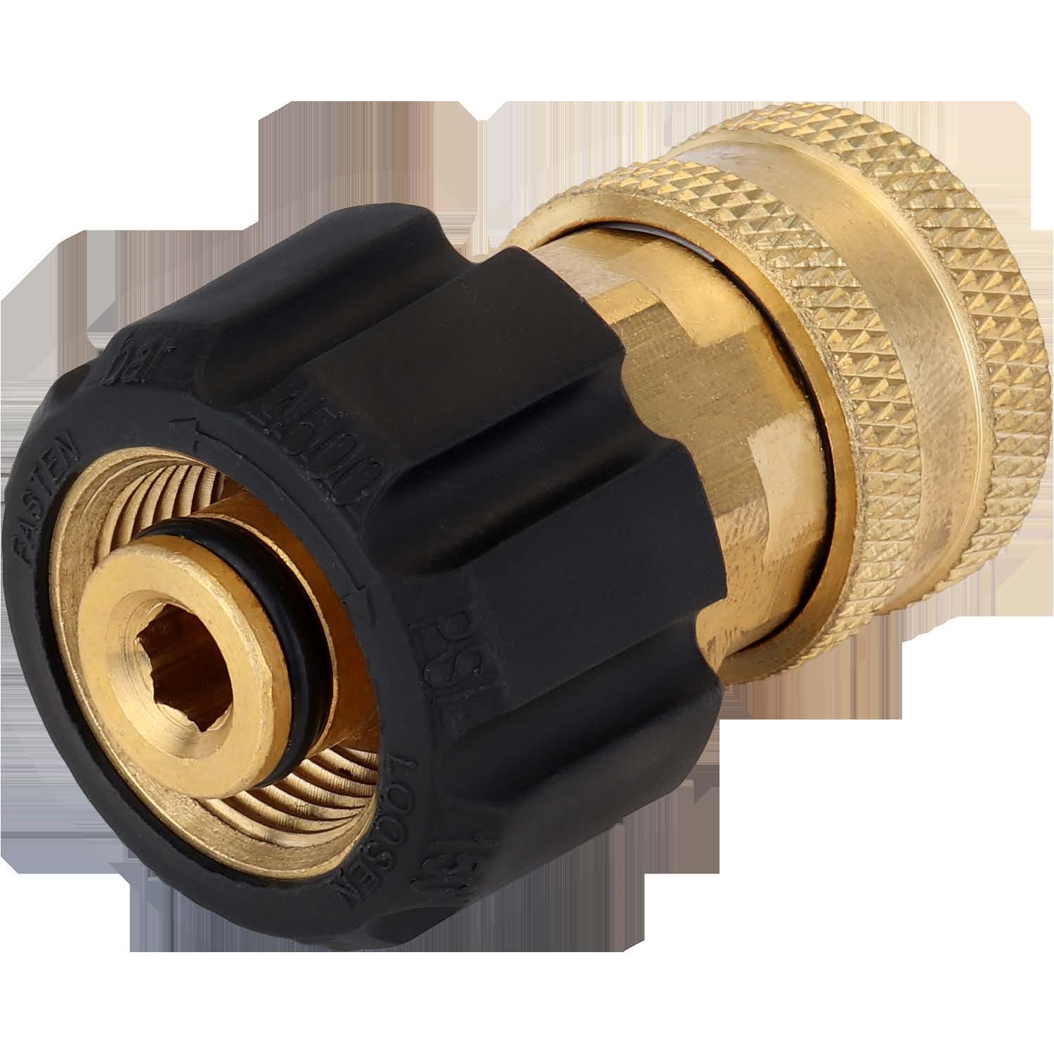 • To be used on a pressure washer gun and hose to convert the M22 thread-on couplings to a 3/8'' quick connector