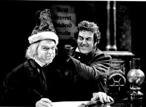 are still moments of pantomime in the performance, such as Charles Dickens beginning the story and then changing into Scrooge, or the moments when the Ghosts ask the audience whether they should keep showing Scrooge scenes in his past and present.