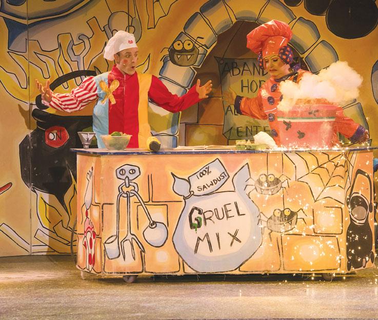 Milwaukee Rep’s adaptation of A Christmas Carol plays on the theatrical style of the English pantomime, a popular amusement for families during the holidays. Some may be familiar with the term pantomime in relation to the theatrical style of acting with physicality instead of words or mimes such as Marcel Marceau. English pantomimes are not, in fact, pantomimed at all!