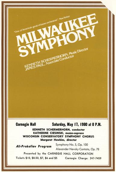 Wielding a “saber-rattling” all-Prokofiev program, the reviews that appeared in print in the days following their Carnegie Hall debut were effusive in their praise: “The Wisconsin Conservatory Symphony Chorus, prepared by Margaret Hawkins, sang lustily and with crisp discipline,” wrote Peter G. Davis in The New York Times. “The Milwaukee Symphony played magnificently in the Prokofiev Fifth Symphony,