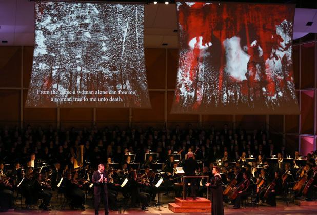 The chorus performs the world premiere of Gil Shohat’s Songs of Bathsheba under the baton of John Nelson