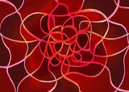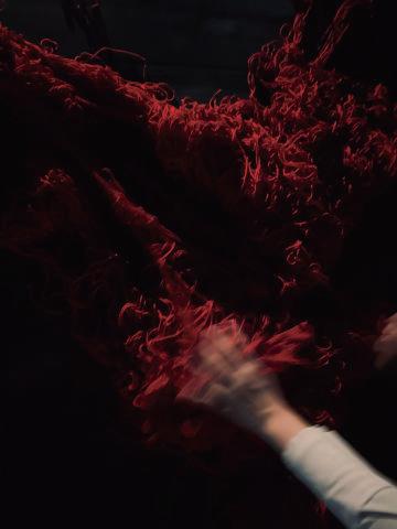 We began by tracing the marks of the movement that actors left on the floor, creating a gradient burgundy red and granular textured background. The initial idea of the set came from picturing the feeling of a burst of excitement, a beating heart, and a passion for love.