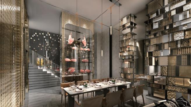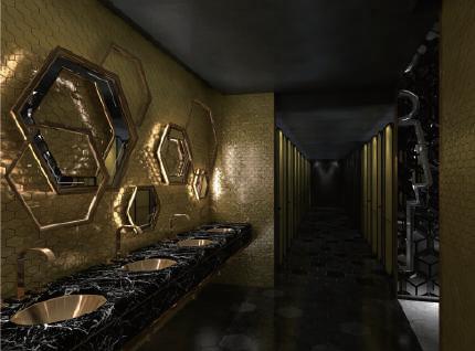 Steel decks are stacked up against the short sides of the space. With the translucent 0.5mm polycarbonate board on the front side, it creates a dance pool with a lightbox effect.